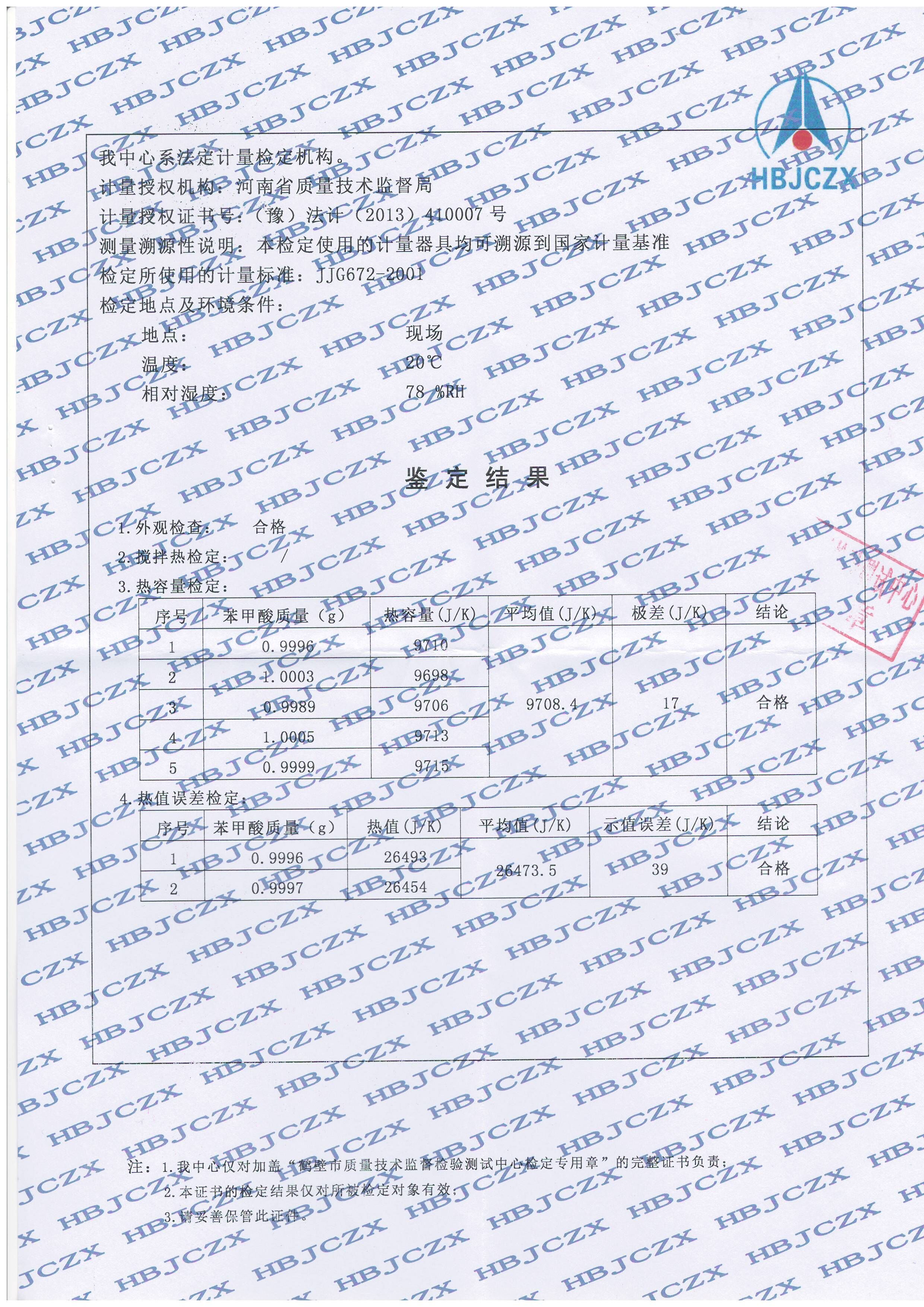 鶴壁市華諾電子科技有限公司是一家專業(yè)研制、生產(chǎn)煤質(zhì)采制樣分析儀器儀表的高新技術(shù)企業(yè)。在社會經(jīng)濟高度發(fā)達的今天,我公司長期堅持“質(zhì)量產(chǎn)生效益,質(zhì)量贏得市場”的理念矢志不移。如今公司在質(zhì)量管理方面已經(jīng)形成了一套完整的體系,上周經(jīng)過公司相關(guān)部門討論,領(lǐng)導決定為出廠的每臺量熱儀辦理“身份證”,即生產(chǎn)的任何型號的量熱儀都要通過鶴壁市質(zhì)量技術(shù)檢測中心檢定并且合格才能出廠運送給客戶使用,鶴壁市質(zhì)量技術(shù)檢測中心會為接受檢定的量熱儀出具檢定證書,上面會詳細的標出量熱儀的型號、出廠編號、檢定結(jié)果等。鶴壁市華諾電子科技有限公司要讓每一位客戶買的放心、用的舒心。